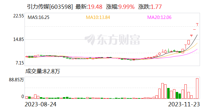 证券日报网讯11月23日晚间,引力传媒发布公告称,本公司股票于2023年11月22日、11月23日连续两个交易日收盘价格涨幅偏离值累计超过20%,根据《上海证券交易所交易规则》的有关规定,属于股票交易异常波动。经公司自查,并向公司控股股东及实际控制人发函问询得知,截至本公告披露日,公司日常经营情况正常,未发生重大变化。公司不存在应披露而未披露的重大信息。
