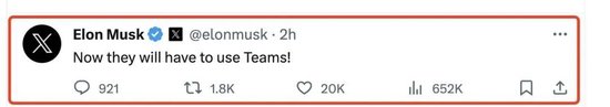 用马斯克讽刺的话来说就是:让这帮追求情怀的人上班用微软Teams,你猜他们能待多久?