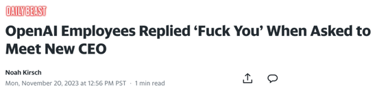 主线#13: OpenAI高管和员工开始用脚投票,在推上疯狂刷一句话:“OpenAI Is Nothing without its people”,逼宫态度溢于言表。