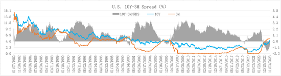 实际上第三季度美国的GDP增速好于预期,就业市场非常强劲,消费表现不错等等,这些宏观指标也都指向了同一个结果,也目前美国经济韧性还是比较好的,和长短利差倒挂幅度收窄给出的信号是一致的,这是一个影响。