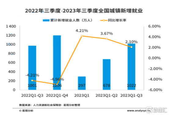 随着外部环境的向好,政策面从供需两端发力稳定和扩大就业,市场需求迎来复苏。人社部数据显示,2023年1-9月,城镇新增就业1022万人,比去年同期多增加21万人。截至9月,城镇新增就业完成全年目标任务的85.2%,明显快于时序进度。