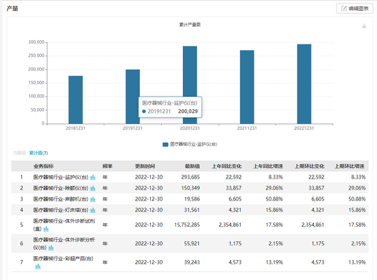 监护仪与除颤仪是迈瑞产量较高的两款产品 图源:Wind