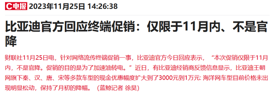 尽管比亚迪否认11月的促销只限于本月以内,但是仍引发市场担忧。除了比亚迪之外,包括零跑汽车、广汽埃安,吉利旗下领克、长城汽车旗下欧拉等多个品牌均相继推出购车补贴、限时优惠等措施跟进。