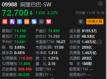 阿里巴巴跌超2%。消息面上,昨日拼多多业绩公布后股价大涨,市值直逼阿里巴巴。马云今日在公司内网回应称坚信阿里会变,阿里会改,AI电商时代刚刚开始,对谁都是机会,也是挑战。他提到,要祝贺pdd过去几年的决策,执行和努力。谁都牛x过,但能为了明天后天牛而改革的人,并且愿意付出任何代价和牺牲的组织才令人尊重。