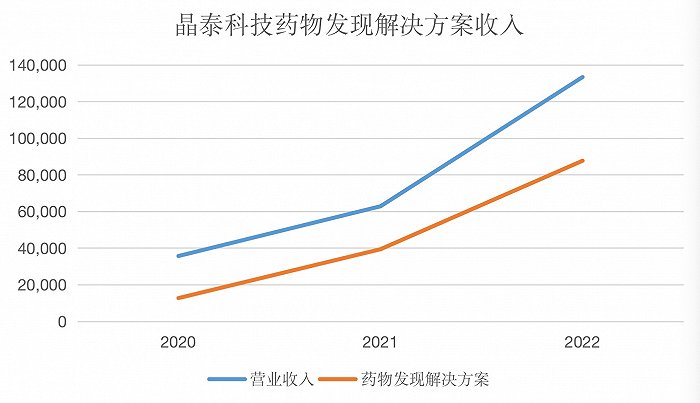 招股书显示,2020年、2021年和2022年,晶泰科技的药物发现解决方案业务收入分别为1266.6万、3934.6万元、8766.6万元,占总营收的35.5%、62.7%和65.7%。
