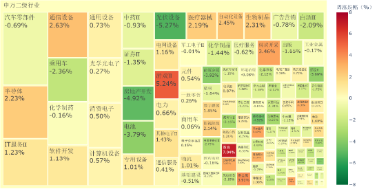 申万二级行业涨跌幅热力图如上图所示,图中行业所在方块大小代表交易额占比大小,颜色反映涨跌幅。申万二级行业中,汽车零部件、半导体、IT服务II、通信设备等板块交易活跃,交易较活跃板块中通信设备上涨2.63%,教育上涨7.04%,游戏II上涨5.24%。受近期AI视频生成工具Pika爆火,AIGC技术助力游戏行业内容生产,本周游戏II涨幅较大。
