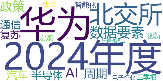 近一月iFinD热门研究报告标题热词表明,近期机构发布证券研究报告中,研究内容主要集中在华为、数据要素等方面。近期,受华为发布新机、举办全联接大会及举办秋季新品发布会、以及搭载华为智能驾驶系统新车发布并热销等消息影响,较多研究关注华为等相关内容。11月25-26日,2023全球数商大会在沪举办,数据要素受关注程度提升。此外,季节性因素方面,较多研究开始展望2024年度宏观经济走势与投资策略。近期,北交所板块较多股票价格快速上涨,较多研究关注北交所。