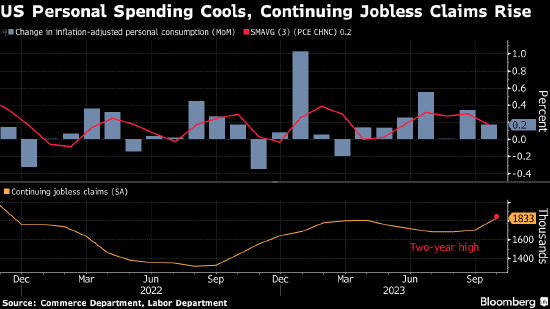 支出放缓将受到美联储官员的欢迎。他们一直担心强劲的消费可能会导致通胀居高不下。期货显示投资者目前预计2024年降息幅度约为120个基点,几乎是他们10月中旬时预期幅度的两倍。
