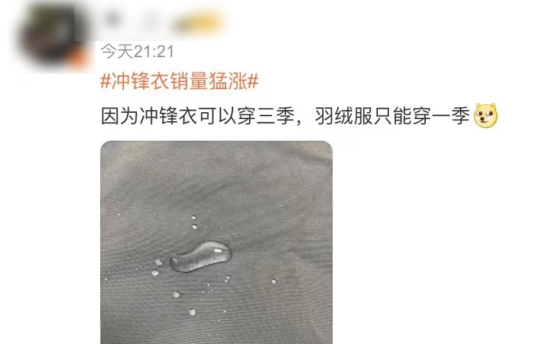 社交平台上,关于冲锋衣的词条活跃度“拉满”,入冬后由冲锋衣贡献的微博热搜词条,就达到数十条。