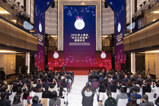 12月3日,2023年上海市“白玉兰纪念奖”颁授仪式在沪举行,来自亚美尼亚、澳大利亚、巴西、加拿大、法国、德国、意大利、日本、韩国、荷兰、罗马尼亚、新加坡、瑞典、英国、美国等15个国家的50位杰出外籍人士获此殊荣。上海市人民政府外事办公室主任孔福安和部分对外表彰评审联席会议成员单位领导向获奖外籍人士颁发了奖章和证书。本市相关部门、获奖外籍人士所在单位和家属以及媒体等百余位代表共同见证“白玉兰纪念奖”颁授仪式。