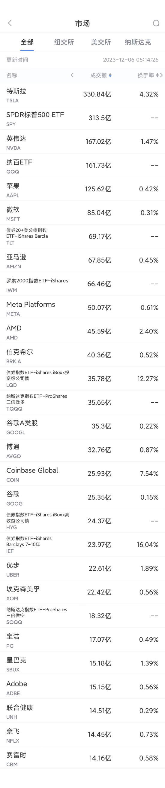 周二美股成交额第1名特斯拉收高1.33%,成交330.84亿美元。乘联会12月4日发布的数据显示,特斯拉11月销量出现近一年来的最大跌幅。尽管国产Model3和ModelY车型交付量在11月环比上涨14.3%,但同比下降了17.8%,批发销量降至8.24万辆。这是自2022年12月以来的最大跌幅,彼时特斯拉销量下降了21%。该公司解释称,下降原因是应对库存增加和需求减弱,特斯拉减少了产量并下调了价格。