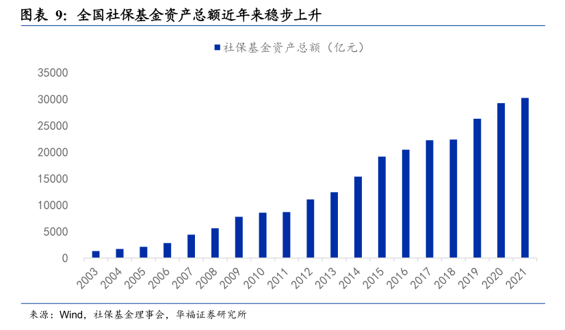 此外在投资监管比例方面,根据《管理办法》,股票类、股权类资产最大投资比例分别可达40%和30%,进一步提高了全国社保基金投资灵活度,有利于持续支持资本市场发展。