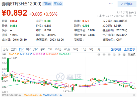 今日券商股集体回暖,华创云信、华鑫股份、方正证券涨逾3%,东兴证券涨超2%,红塔证券、申万宏源、中泰证券、东方证券等跟涨逾1%。板块代表ETF——券商ETF(512000)场内价格收涨0.56%,全天成交额4.74亿元。