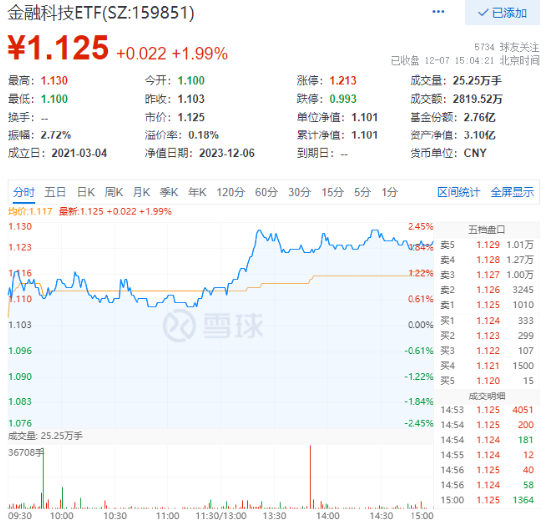 一、【龙头6连板!双重利好催化,金融科技ETF(159851)放量大涨1.99%,机构:行业价值或将重塑】