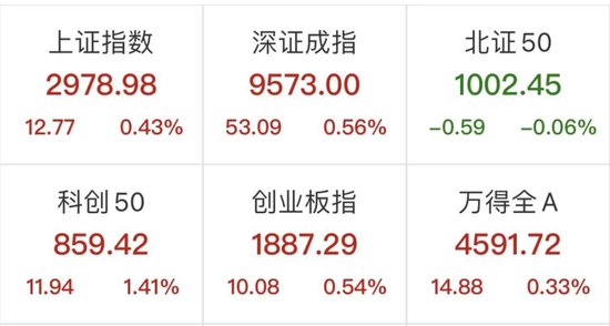 12月8日上午,A股三大指数小幅收红,截至午间收盘,沪指涨0.43%,深成指涨0.56%,创业板指涨0.54%。北证50冲高回落。